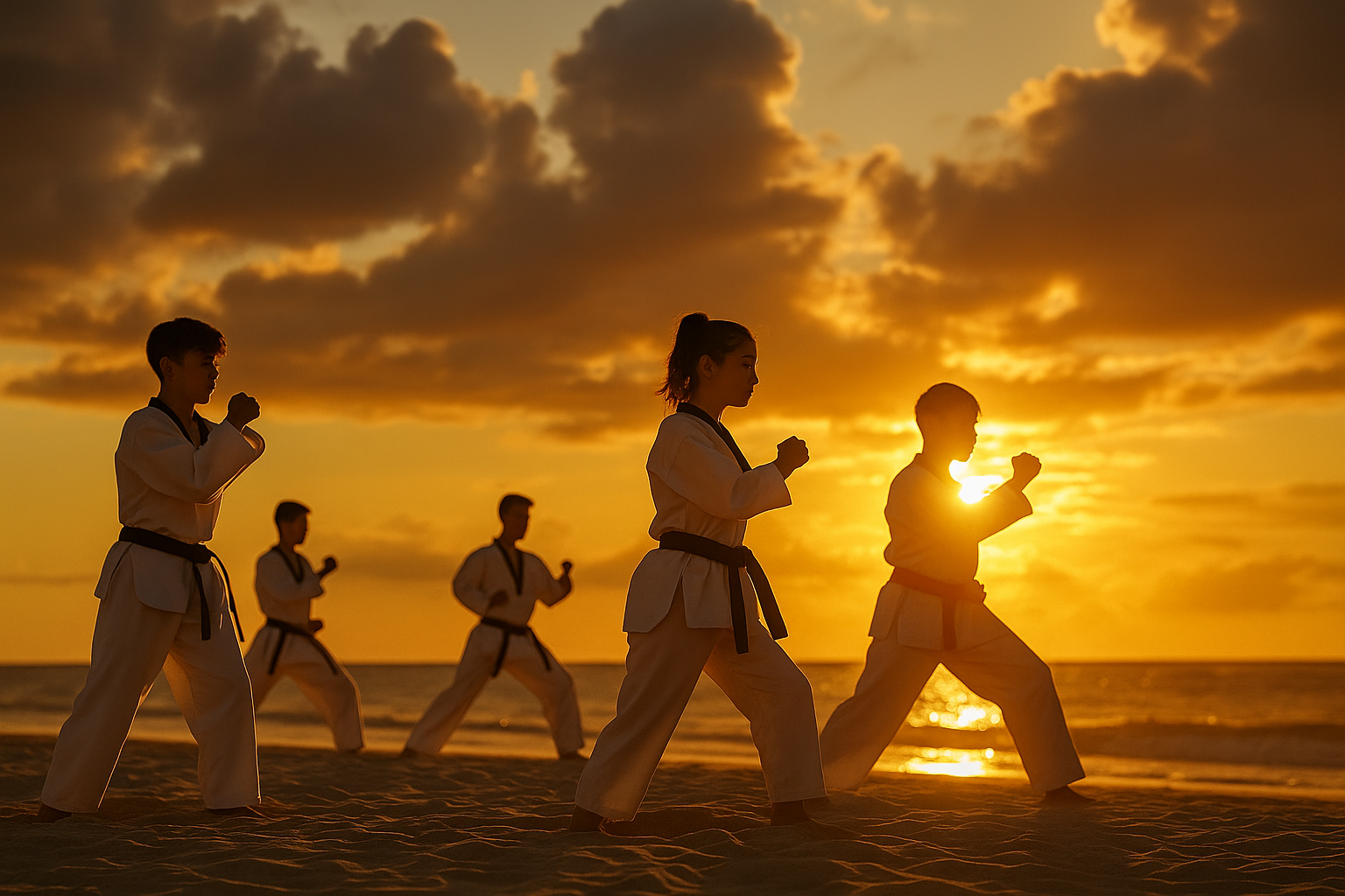 El taekwondo es un arte marcial coreano que combina técnicas de defensa personal, combate deportivo y desarrollo personal. Se caracteriza por sus potentes patadas, su énfasis en la disciplina y su filosofía de respeto.